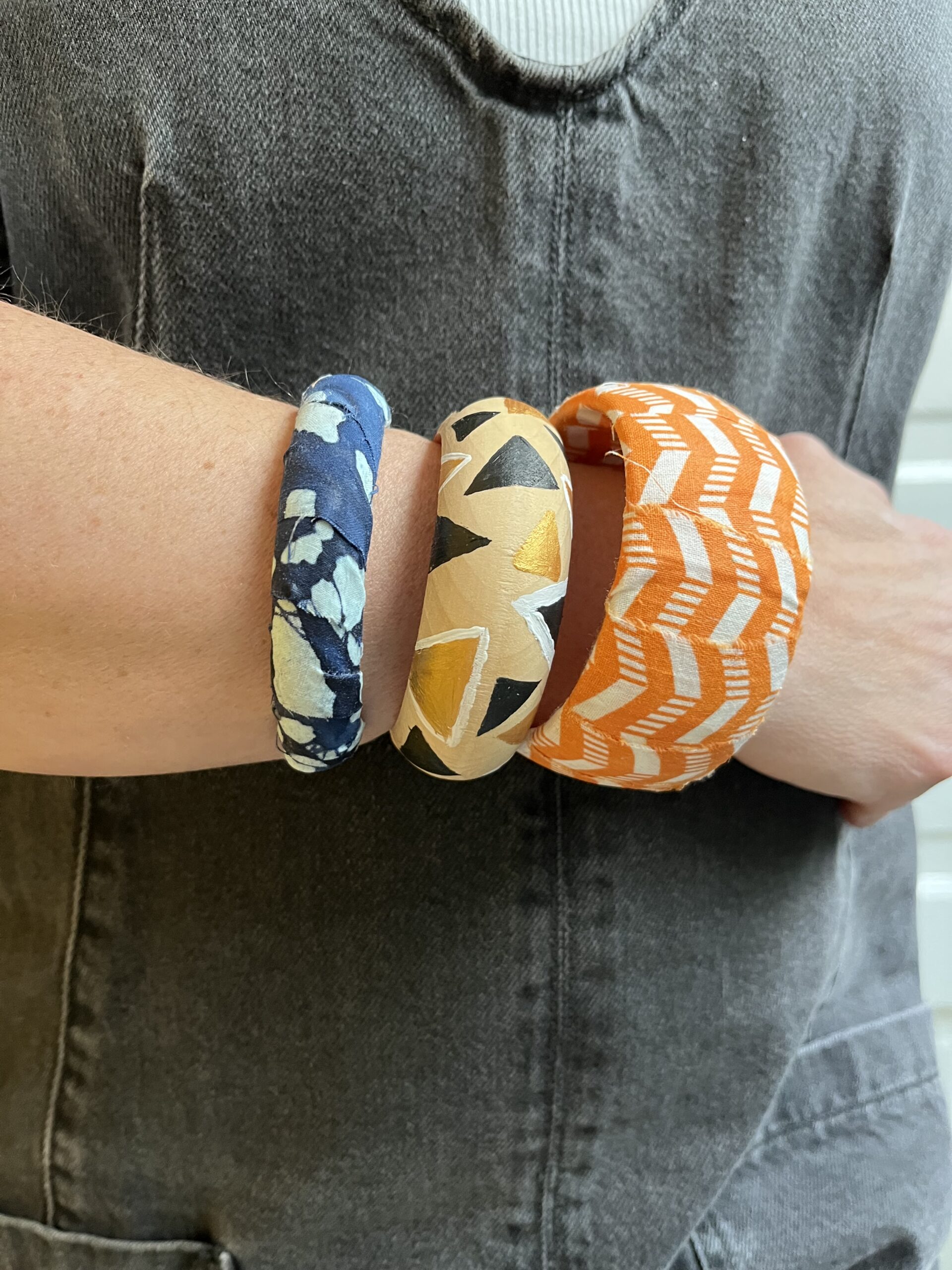 Join artist Tiffica Benza for this workshop to learn how to make your own wrapped bangles. Mix and match your bangles with fabric and thread. Bonus: paint will be available to also paint patterns directly on the bangle.