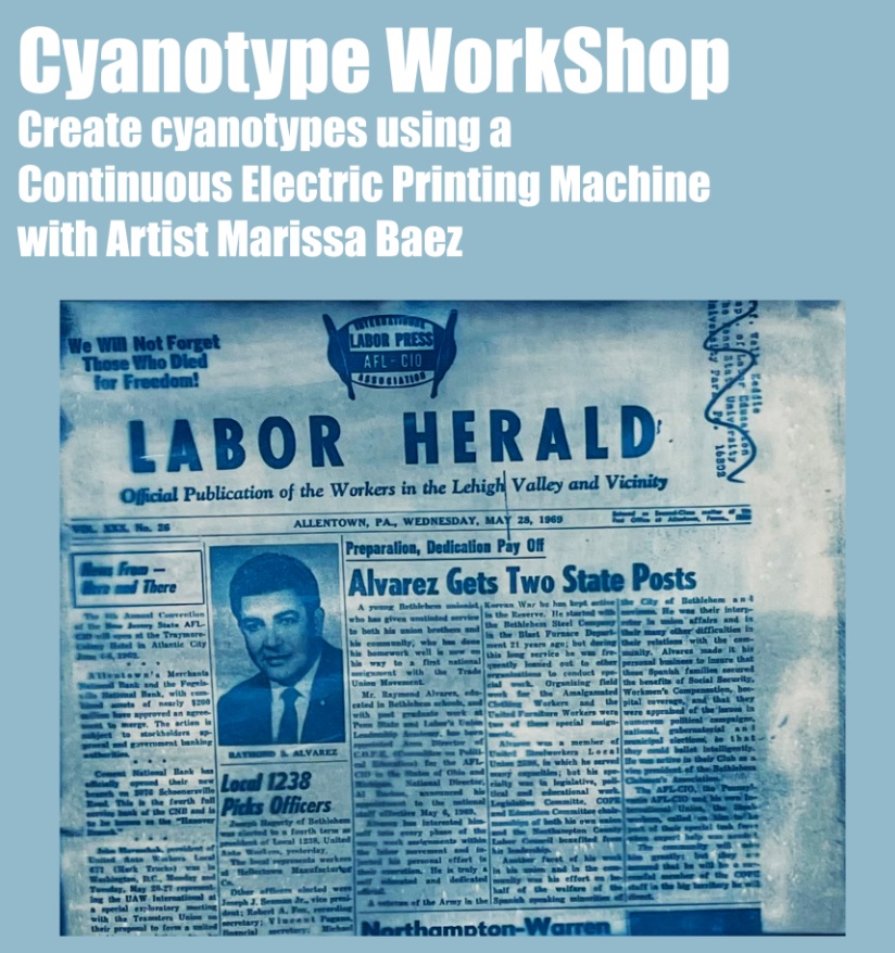Join Artist Marissa Baez in creating cyanotypes using NMIH’s historic blueprint machine. In this workshop, you will have the opportunity to print two of your photos or images using a Continuous Electric Printing Machine over 100 years old. It uses the light of an electric arc lamp to expose cyanotype paper, producing blue images. Historically utilized to create blueprint copies of land surveys, it can now be used to duplicate drawings, photographs, and virtually any artwork that can exist on paper. Marissa will print your images on transparent film before the workshop, then show you how she used the transparencies and the historic machine to create the cyanotypes in her recent exhibit titled Materia Medica at ArtsQuest. In addition to your machine exposed image, you can create an additional cyanotype using sunlight. In your additional cyanotype, feel free to bring materials of your choice (flowers, leaves, stones) or email another image ahead of time. Be sure not to wear loose jewelry or open-toed shoes. If you have long hair, please bring a hair tie. Make sure to email Marissa Baez your images at [email protected] by March 14, 2026. Your paper size will be around 9×12 or slightly larger. Registration will close on March 13th at 4:30PM.