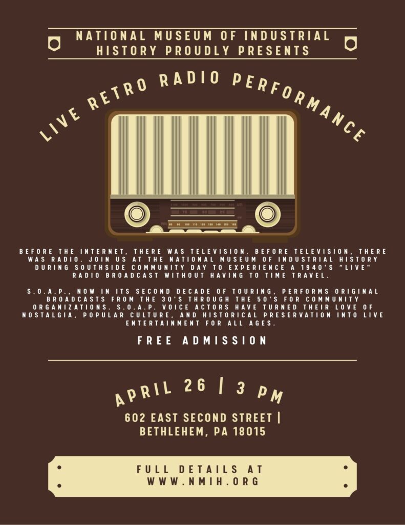 Before the Internet, there was television. Before television, there was Radio. Join us at the National Museum of Industrial History during SouthSide Community Day to experience a 1940’s “LIVE” Radio Broadcast without having to Time Travel.